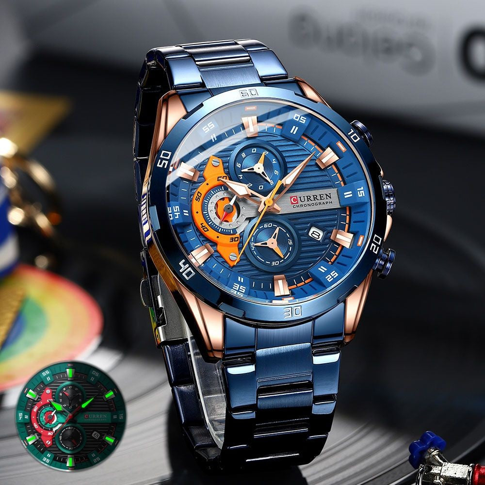 CURREN Relógios de aço inoxidável para homens, moda criativa, mostrador lumin