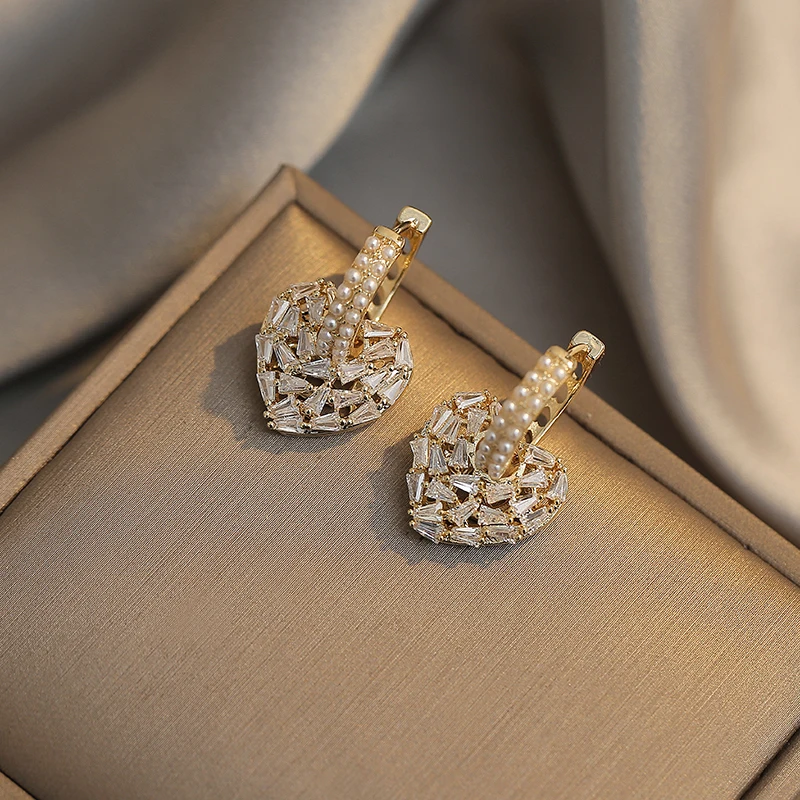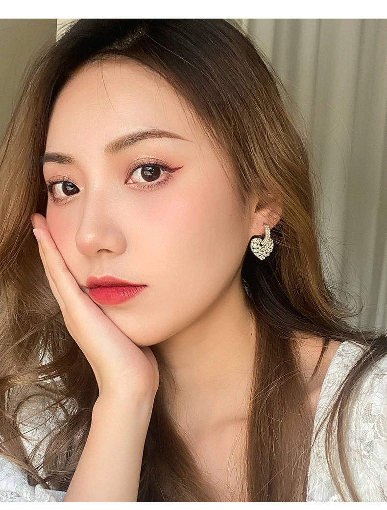Luxo cristal em forma de coração pingente cor de ouro brincos coreano moda jó